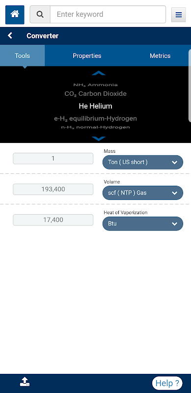 · Penukar - menukar sifat gas industri dengan mudah dan cepat, metrik yang biasa digunakan, seperti suhu, berat dan isipadu. Berkongsi penukaran melalui e-mel dan teks