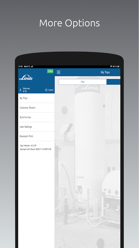 Aplikasi Ini membolehkan pemandu kontrak untuk menangkap maklumat penghantaran dan memulakan proses bil pelanggan tanpa campur tangan manual. Ini mempunyai kesan positif ke atas aliran tunai, pengurangan dalam nota kredit, dan pengurangan dalam bil terlepas .. Untuk pelanggan tertentu, Linde menginsuranskan beban tidak diganggu dengan meletakkan meterai pada mata yang berbeza pada treler. Dengan App, pemandu kini boleh mengimbas kod bar pada meterai ini daripada telefon pintar dan mempunyai kod-kod mencetak secara langsung pada nota penghantaran, menghapuskan kertas kerja,