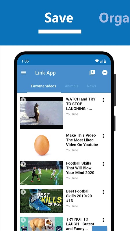 Save music videos, links, URLs, news. The archive organizes music, videos and URLs.