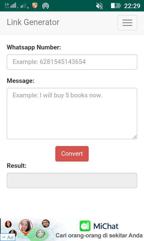 Application for creating Whatsapp chat links