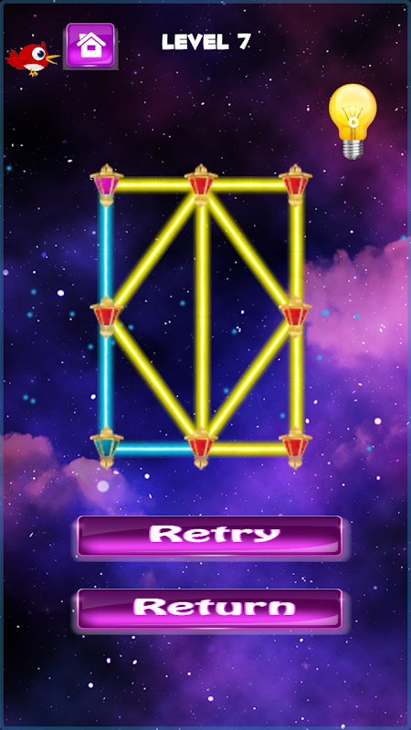 • Hints. In case you find yourself stuck and without any idea how to connect the dots with one touch. You are welcome to use hints!