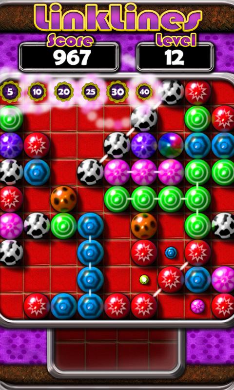 LinkLines is a free remake of the classic Lines puzzle game. The object of the game is to link five balls of the same color to form a line in any direction. Create lines to stop the board from filling up!