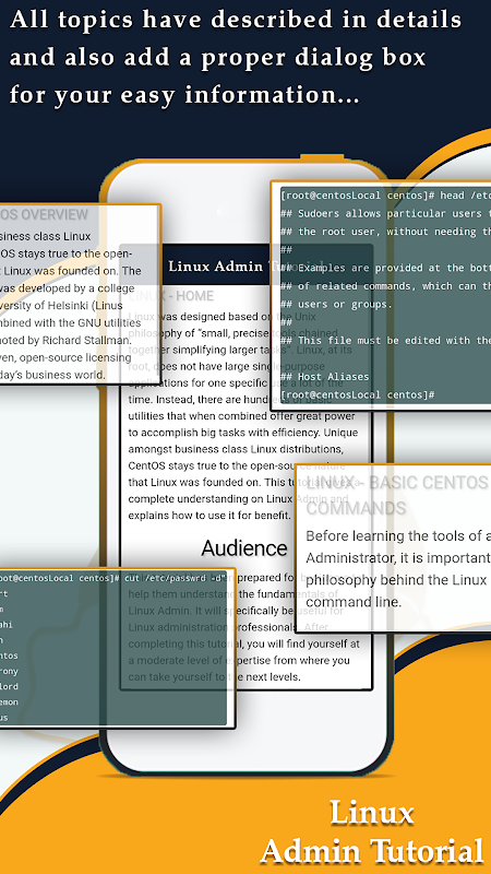 Pengguna untuk mempelajari Linux dan semua topik yang berkaitan dengannya secara langkah demi langkah.Apl ini menyediakan asas Linux yang cemerlang dan juga dengan konsep teras Linux.