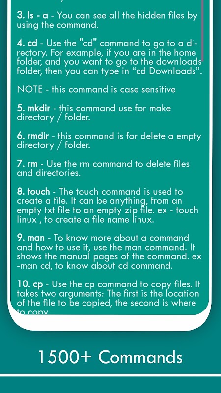 Perpustakaan Perintah Linux mengandungi perintah asas berguna Rhel dan Kali dengan cara yang tersusun dengan baik supaya pemula dapat mempelajari perintah-perintah ini dengan mudah. Perbezaan utama antara aplikasi ini dan yang lain adalah bahawa aplikasi ini mengandungi susun atur dan reka bentuk yang ringkas dan asas. Perkara terbaik mengenai aplikasi ini ialah anda boleh menggunakannya secara percuma dan juga anda boleh menggunakannya di luar talian.