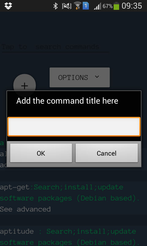 Linux command manual also allows adding your own commands and linux shell scripts to the list