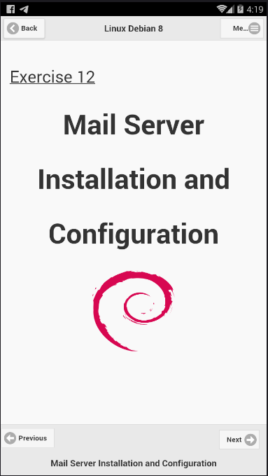 Linux Debian 8 Server kursus eBook dalam borang permohonan android.
