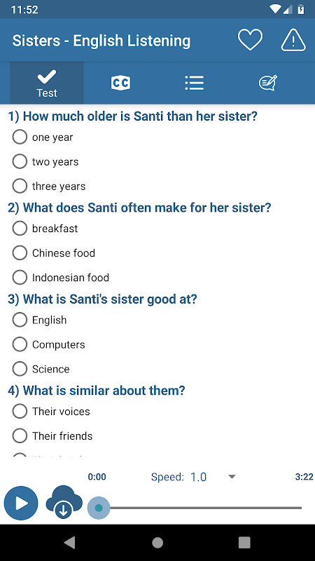 Dengar bahasa Inggeris dan ujian harian membantu anda memperbaiki kemahiran bahasa Inggeris anda