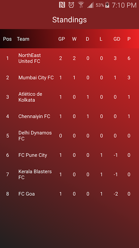 Live Updates-ISL Android App provides you direct access to the ISL(Indian Super League) Live scores,Playing Eleven and ISL fixtures. It's light weight and easy to use so you can access the latest ISL scores.