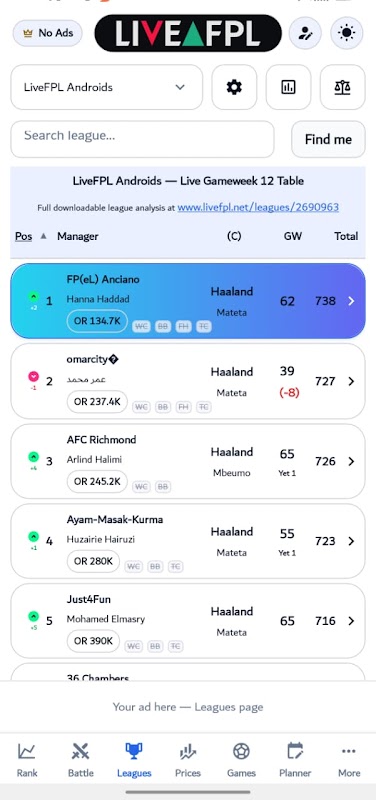Pertempuran Langsung – Bandingkan pasukan anda dengan rakan, liga mini atau pengurus tertinggi semasa Minggu Permainan.