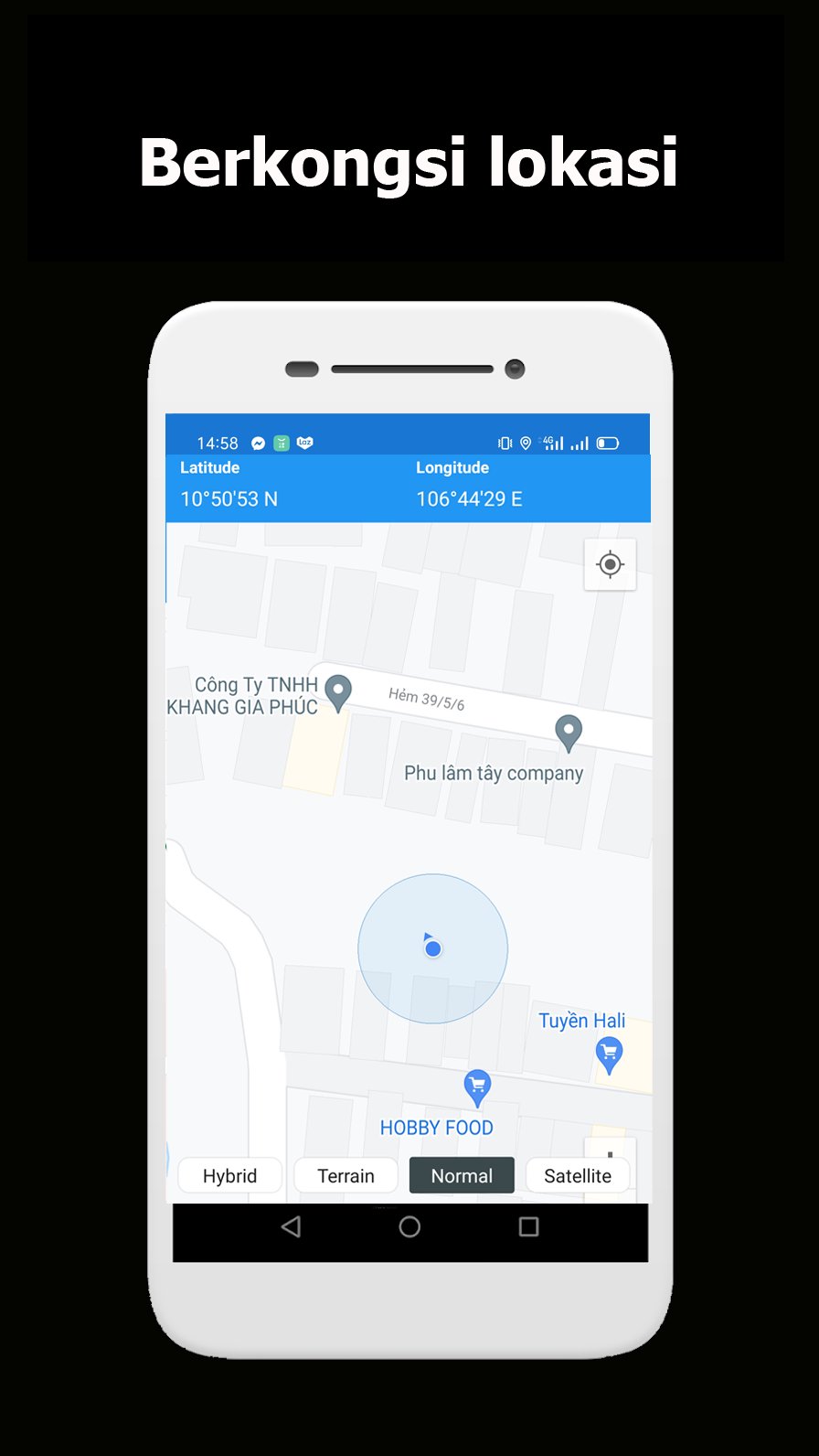 - Aplikasi peta lokasi menyokong empat jenis peta: iaitu peta satelit, medan, hibrid. Anda boleh Zoom peta skala maller 100% ke bawah.