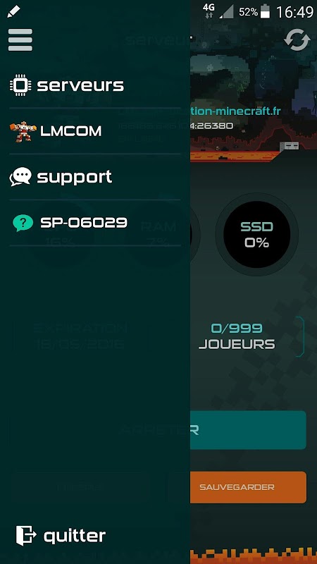 - Voyez en temps en réels les stats du serveur CPU, RAM, SSD, nombre de joueurs connectés…