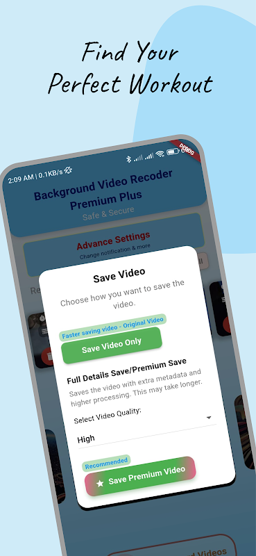 Muat turun Perakam Video Latar Belakang Premium Plus hari ini dan tingkatkan pengalaman rakaman video anda ke tahap seterusnya! Rakaman anda, peraturan anda, dengan fleksibiliti muktamad dan ciri berkuasa.
