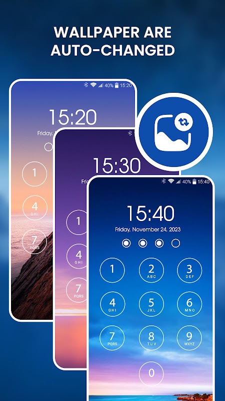 Kunci skrin dengan kod laluan - Auto tukar kertas dinding