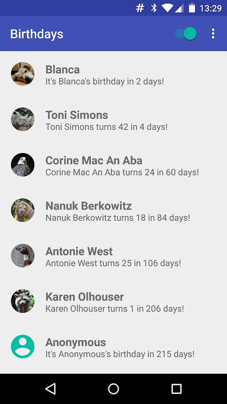 Aplikasi ini membawa hari lahir anda kembali ke skrin. Pemberitahuan hari jadi hanya akan muncul pada lockscreen dan tidak mengisi berharga harta bar pemberitahuan anda sebenar!