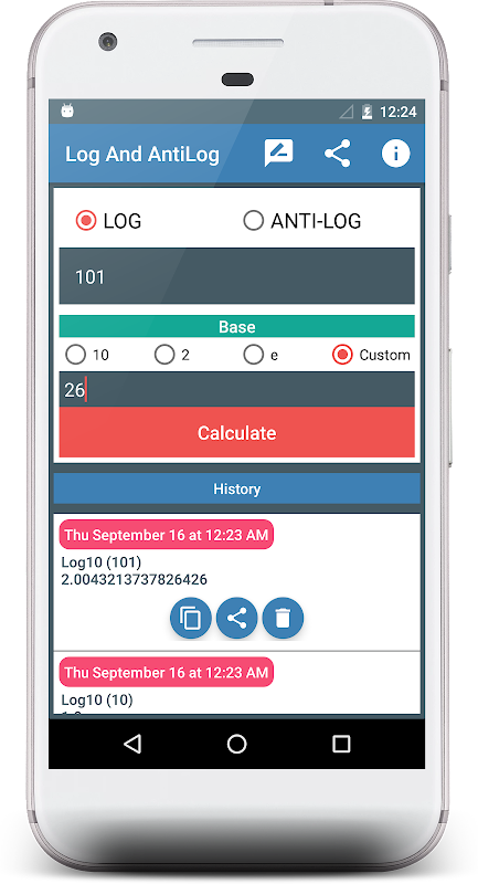 ia adalah kalkulator log pintar yang membantu mengira log dan log terbalik dari sebarang asas nombor.