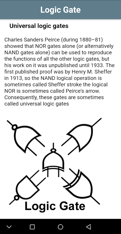 This app provides basic information about Logic Gates to the students.