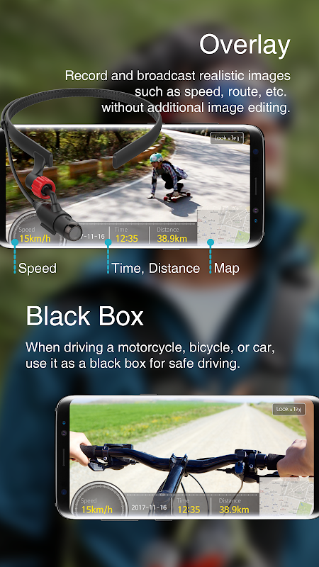 - GPS 오버레이 기능은 영상녹화, 유튜브라이브, 페이스북 라이브에서 별도의 장비와 편집없이 실시간으로 사용 가능합니다.