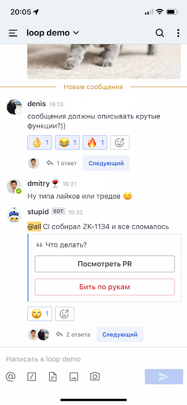 - Setiap mesej menyokong pemformatan turun, perbualan boleh dibahagikan kepada cawangan dan mempunyai berbilang perbualan dalam sembang umum.