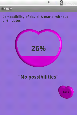 Esta aplicación sirve para obtener el porcentaje de compatibilidad entre 2 personas.