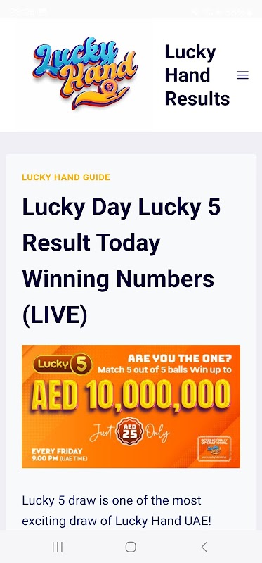 Dapatkan kemas kini terkini dan panduan komprehensif untuk hasil Lucky Hand, terus dari UAE! Apl Lucky Hand kami ialah sumber utama anda untuk semua keputusan cabutan Lucky Hand, termasuk Lucky 5 dan Lucky 6 baharu.