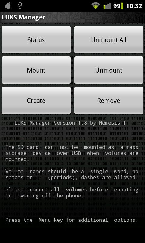 * Versi statik disusun dan dilucutkan cryptsetup untuk ARM7 dengan menggunakan alat-alat yang disediakan oleh Projek Guardian.