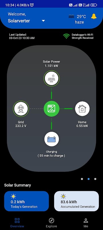 Device Offline Screen Removed for All Inverter. In offline case it will now show data with last updated date. After 1 hrs. it will greyed out all animations.