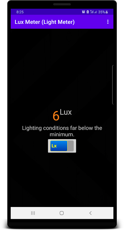 Ia dapat menetapkan semula nilai pada bila-bila masa. Lux meter memahami ciri-ciri sensor perkakasan pada peranti anda. Meter lux dikembangkan dengan memasukkan idea GUI yang ringkas dan dipertingkatkan. Pintar, minimalis, dan antara muka pengguna yang intuitif; ia bermula dengan serta-merta.