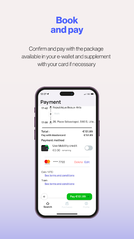 Gunakan pakej mobiliti anda untuk membayar perjalanan anda dengan bebas sepenuhnya, dan tambah nilai dengan kad anda jika perlu! Sesuaikan pilihan anda dari kawasan "akaun saya" anda untuk menambah penumpang, simpan alamat kegemaran anda dan pilihan laluan untuk pengalaman yang disesuaikan dengan jangkaan anda.