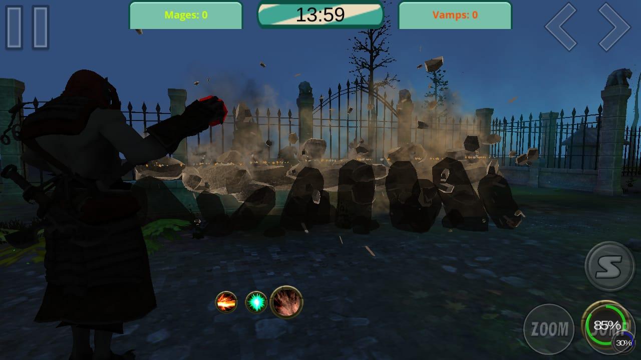 Magic Arena Multiplayer is an intense and awesome 3D fighting game. In this epic title, you are transported to a land of fantasy full of vicious monsters, wizards and vampires! You can take part in brutal combat as either a wizard or a vampire, and you can either fight against a friend in the awesome PVP mode, or against waves of monsters in the single player version.