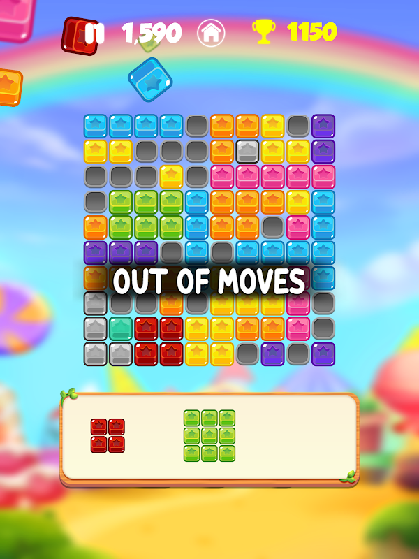 Permainan tamat apabila tiada blok boleh dimuatkan di papan. Jejaki kemajuan anda dan sasarkan untuk mengalahkan markah tertinggi anda!