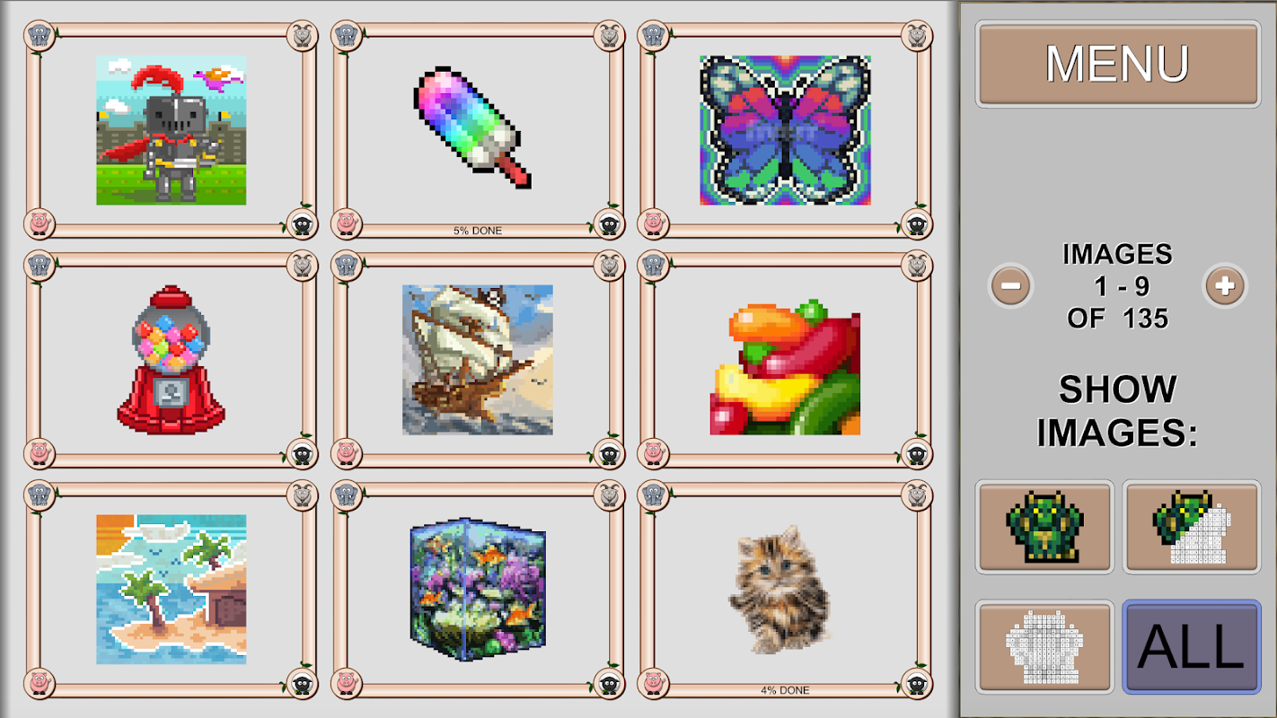 - versi penuh termasuk keupayaan untuk menetapkan semula kemajuan dan semula warna imej yang sama sekali lagi