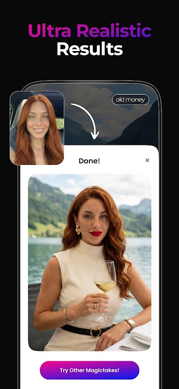 Magic Retake menghidupkan diri digital anda — dengan foto AI yang menakjubkan dan realistik yang pasti anda rasakan.