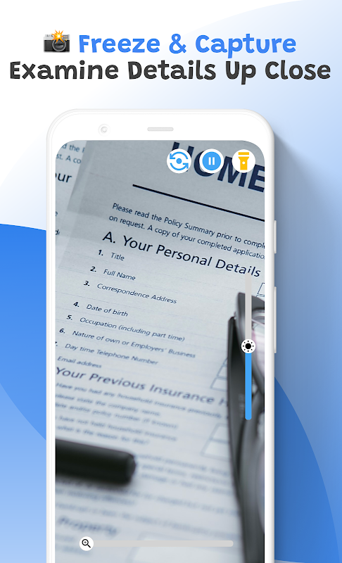 Lihat sesuatu yang menarik? Jeda skrin, menangkap, dan zum ke dalam imej. Ia seperti mempunyai mikroskop di dalam poket anda!