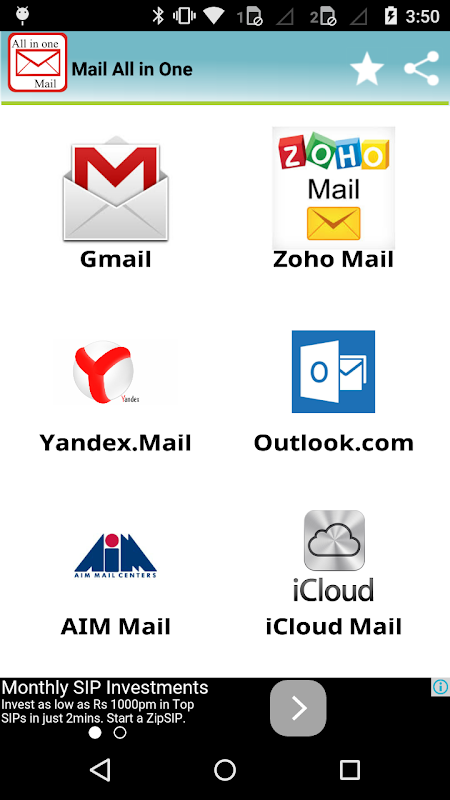 Mail All in One is a must have app for all E-Mail ,Mail users. As its name suggests it contains all popular mail provider sites and one can access his/her favorite mail media such as Gmail , Hotmail, Zoho etc. through this app.