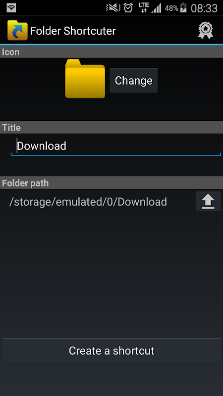 Aplikasi ini adalah alat untuk mencipta pintasan untuk folder pada skrin utama.