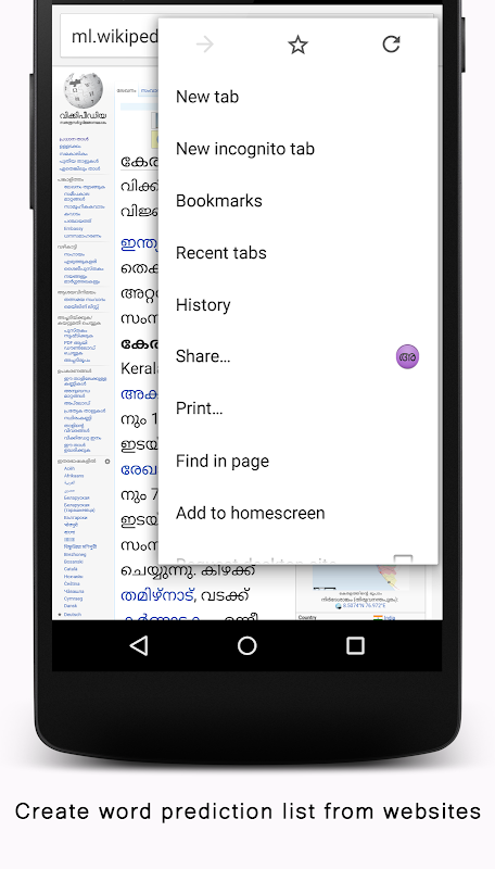 Malayalam Keyboard untuk Android ™ adalah alat input Malayalam mudah dan pantas untuk peranti Android. Dengan menetapkan kaedah input lalai dalam peranti android anda, alat ini boleh digunakan dalam apa-apa permohonan untuk menaip Malayalam.