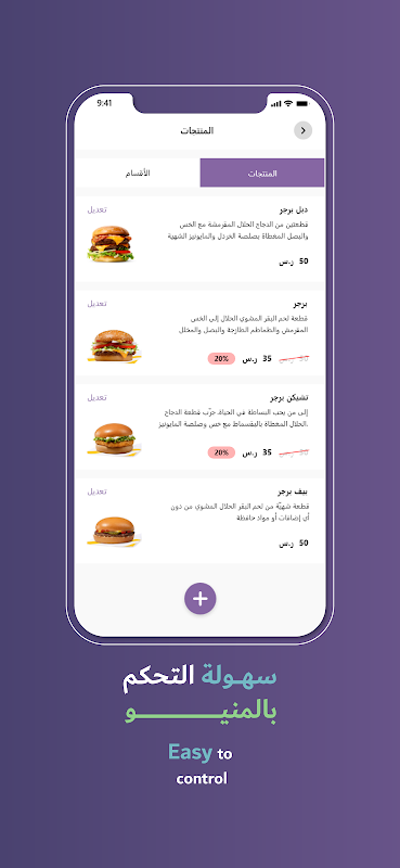Aplikasi ini membenarkan kawalan penuh restoran dengan menambah menu, membuat tawaran dan menguruskan waktu kerja dan membenarkan penerimaan dan penolakan pesanan.