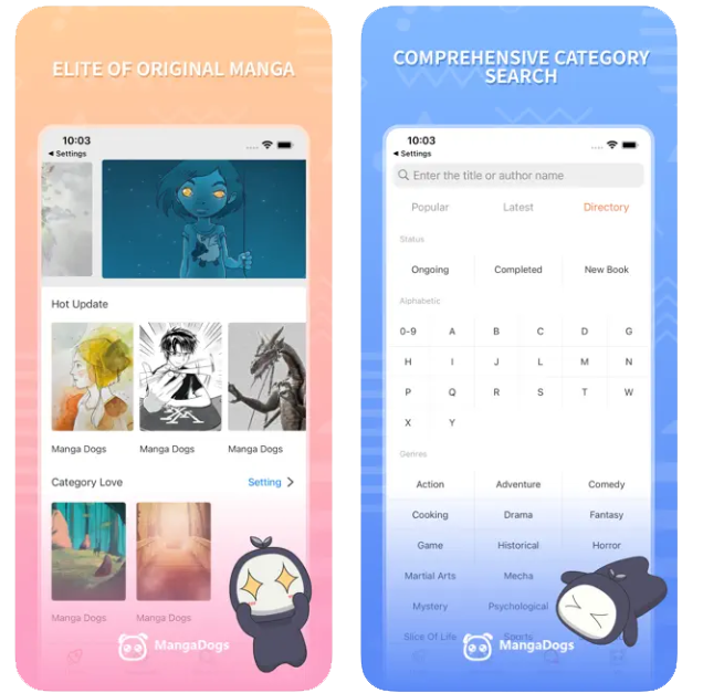 - Push Notification: get instantly notified when your favorite manga has new chapters
