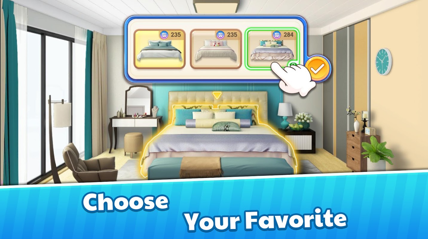 Sementara itu, nikmati permainan teka-teki perlawanan-3 yang menyeronokkan dan ketagihan untuk memenangi syiling! Lengkapkan tahap yang sepadan untuk mengubah suai semua jenis bilik dan rumah termasuk halaman belakang, balkoni dan juga kolam! Apa tunggu lagi Muat turun untuk menghiasi rumah anda secara percuma sekarang!
