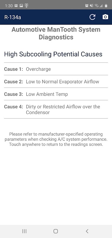 Selain menampilkan bacaan tekanan langsung dan suhu, Sesi Tekanan / Temp melacak statistik tekanan MIN / AVG / MAX, memaparkan suhu tepu wap dan cecair, menghitung superheat dan subcooling, menghitung superheat sasaran, dan memungkinkan pengguna untuk masuk dan menampilkan nilai subkooling sasaran . Sesi Vakum memaparkan pembacaan vakum langsung, memungkinkan pengguna untuk masuk dan menampilkan tahap vakum sasaran, dan menyediakan fungsi "Uji Tahan" untuk pengosongan sistem yang berkesan. Untuk aplikasi automotif, maklumat grafik dan penyelesaian masalah entalpi untuk bacaan superheat dan subcooling memberikan maklumat diagnostik tambahan.