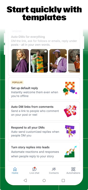 Berhenti bermain permainan algo. Mula berkembang dengan alatan yang benar-benar menangkap penglibatan dan meningkatkan jangkauan. Balas sebutan cerita, siarkan ulasan atau balasan gelendong secara automatik — supaya pengikut anda terus datang kembali untuk mendapatkan lebih banyak lagi.
