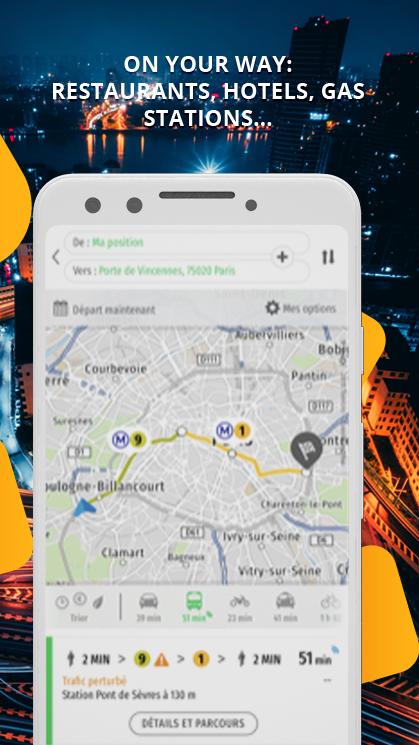 - Déroutes optimized for car, bicycle and pedestrian.