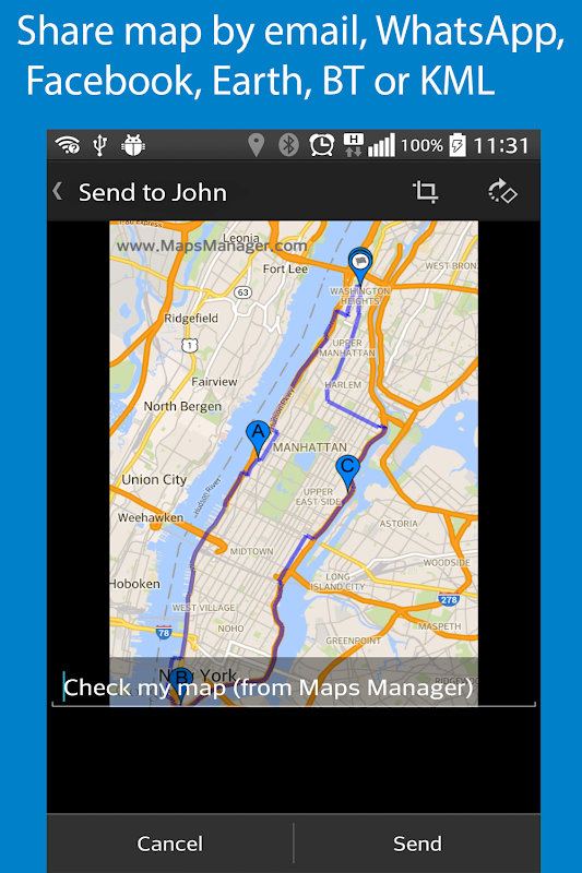 • Share your travels with friends using email, WhatsApp, Facebook, Google Earth, Bluetooth or as KML file