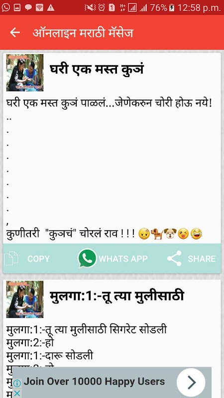 Marathi sms app - झिंगाट contains prem,jokes,tomane,inspire,dard,status, sms