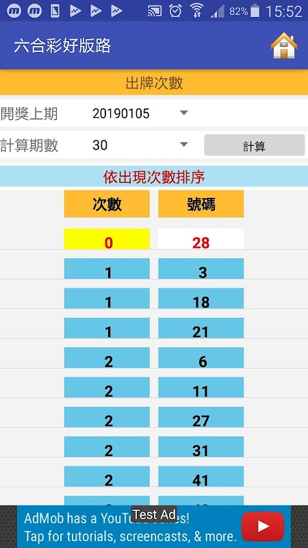 第一次安裝使用,進入主畫面一會即會自動更新到最新期數開獎資料.