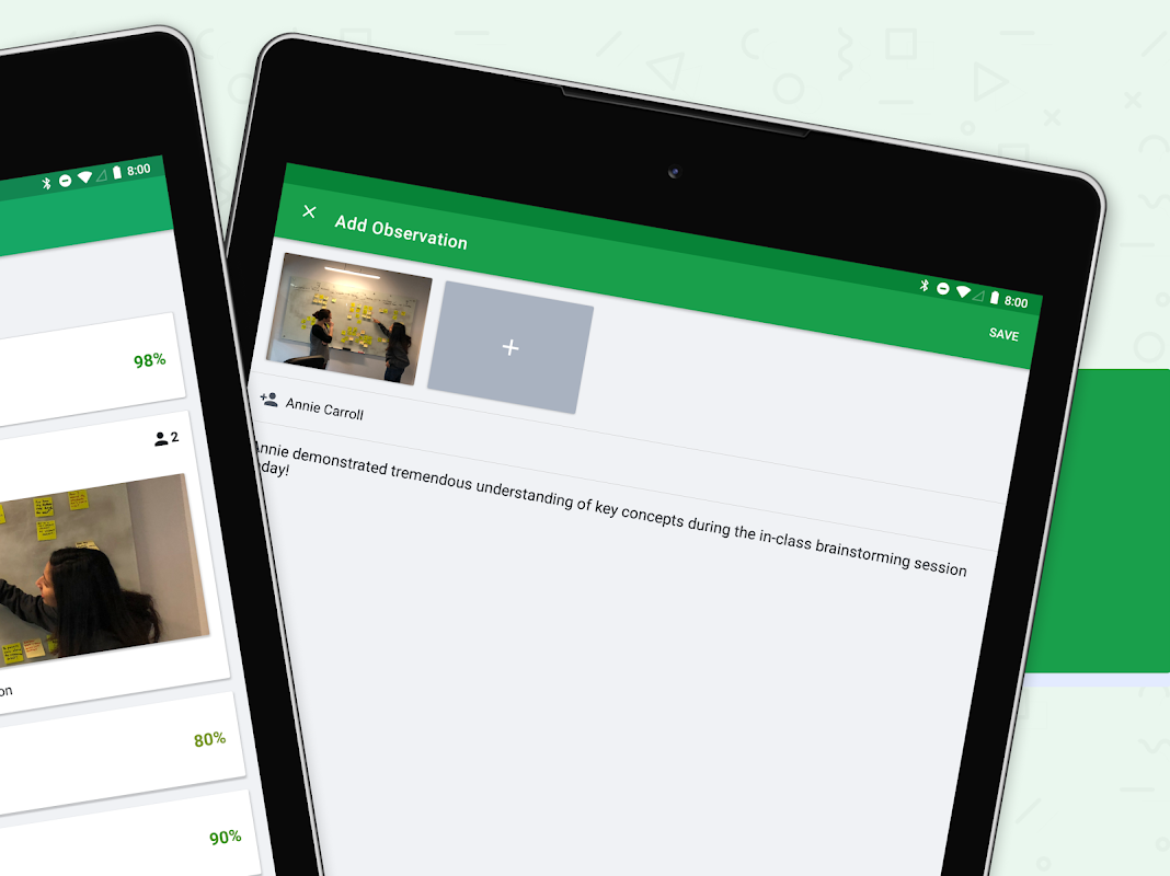 Tangkap pembelajaran pelajar di mana sahaja dengan Markboard. Tambah foto, video, rakaman audio dan nota ke e-portfolio pelajar. Papan tanda juga membolehkan anda melihat dan mengedit gred kanan dari dalam aplikasi.