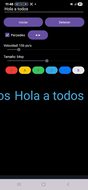 Warna, saiz dan kelajuan boleh laras dalam masa nyata.