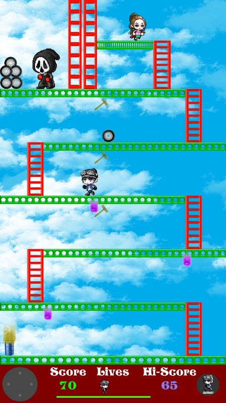 - At all levels you have hammers to destroy enemies, but be careful as soon as you touch the stairs you will lose the hammer, not being able to climb with the hammer down the stairs.