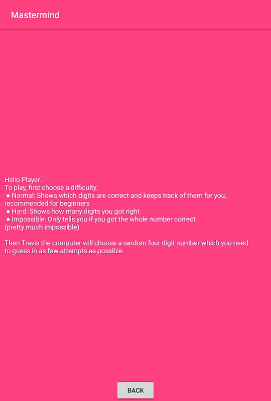 Compete with your friends and your own high-scores with Mastermind Numbers in a clean, modern interpretation of the classic board game.