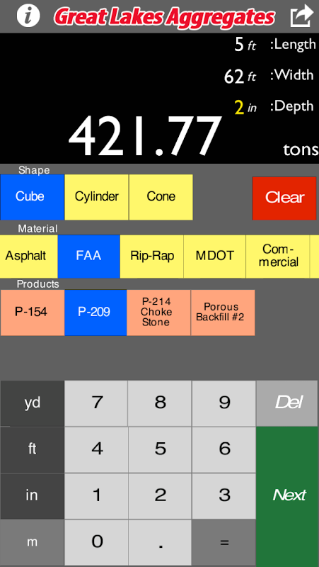 The Great Lakes Aggregate calculator quickly estimates the material weight for over 20 Limestone, Recycled Aggregates, Rock Recyclers and Sylvania Minerals.